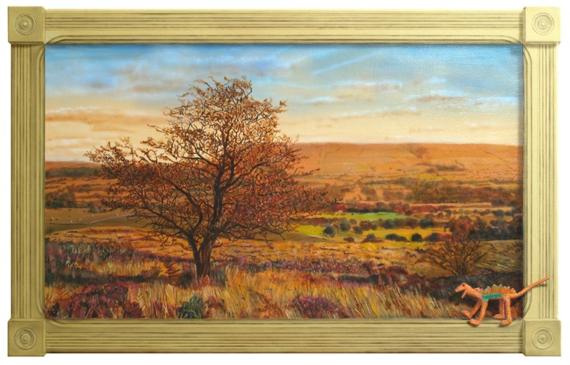"Dino" 29" x 25" Acrylic on Shaped Canvas Trompe l'oeil frame |