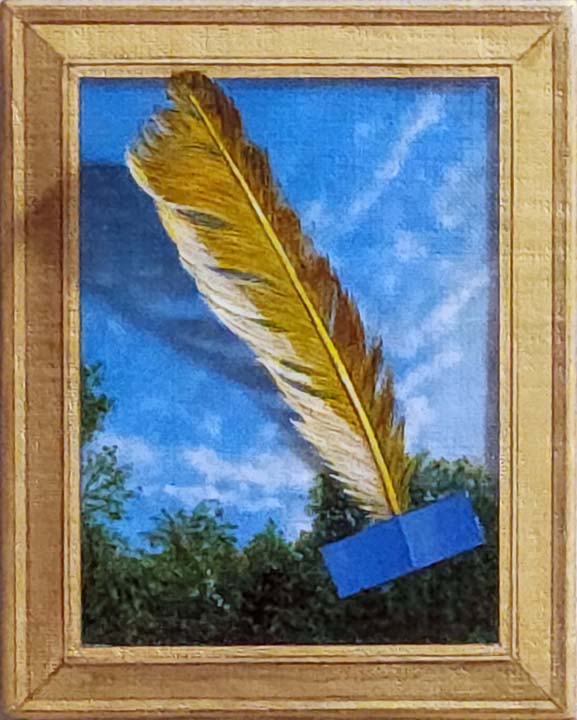 "Feather" 7"x 5.5" Acrylic on Linen Trompe l'oeil frame |