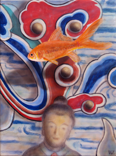 "Study for Hong Kong Goldfish" 12"x 9" Acrylic on Wood Panel |