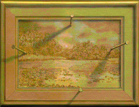 "Placcato Oro # 9: Nailed" 9"x 12" Acrylic on Canvas |