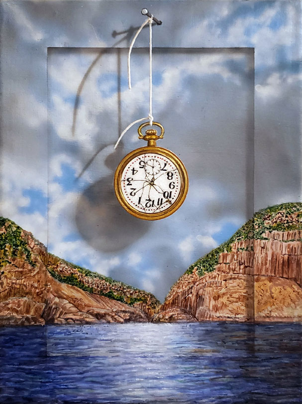 "R.S.V.P." 12"x 9" Acrylic on Canvas Trompe l'oeil frame |
