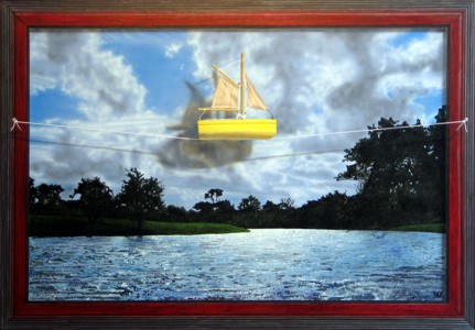 "Sailing on the Ribble" 25.5" x 36.5" Acrylic On Canvas Trompe l'oeil frame |