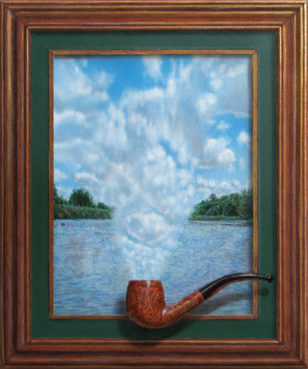 "Up In Smoke" 12"x10" Acrylic on Canvas Trompe l'oeil frame |