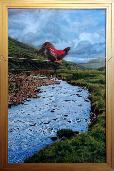 "The Phantasmagorical Bird" 30"x 45" Acrylic On Canvas Trompe l'oeil frame |